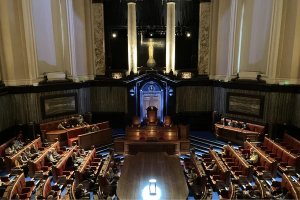 The Courtroom Stalls at London County Hall has a capacity of 234, split across six sections. The main area of the Courtroom Stalls comprises of two blocks of seats forming a semi-circle around the stage, with an aisle in the centre. Each of these blocks has six rows of seats, with the best views located in rows C and D towards the centre.