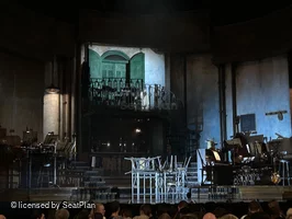 There are restricted views in certain areas of the auditorium due to the placement of support pillars, which can result in major viewing obstructions. The rows curve into a horseshoe shape, which can cause seats at the ends of rows to suffer from a side-angle view of the stage.