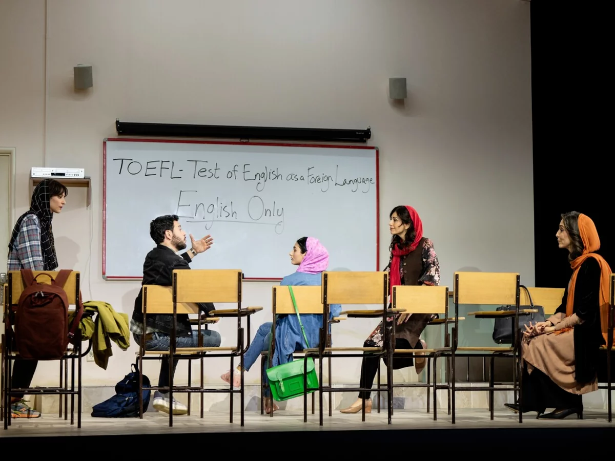 In a classroom not far from Tehran, a group of adults are trying to get a handle on accents, punctuation and vocabulary. As they prepare for their English proficiency exams and jump through confusing linguistic hoops, much more than a shared wish to learn a new language emerges. Hidden hopes and dreams, frustrations and secrets tumble out, but can they overcome the limits of words and discover what they really want to say? Mixing humour and drama and touching on universal themes, English premiered at Atlantic Theatre Company as a co-production with Roundabout Theatre Company. In 2023 it had its “engaging, provocative and ultimately moving” (Whats On Stage) European premiere at the Royal Shakespeare Company in Stratford-upon-Avon.Cast and Creative Team